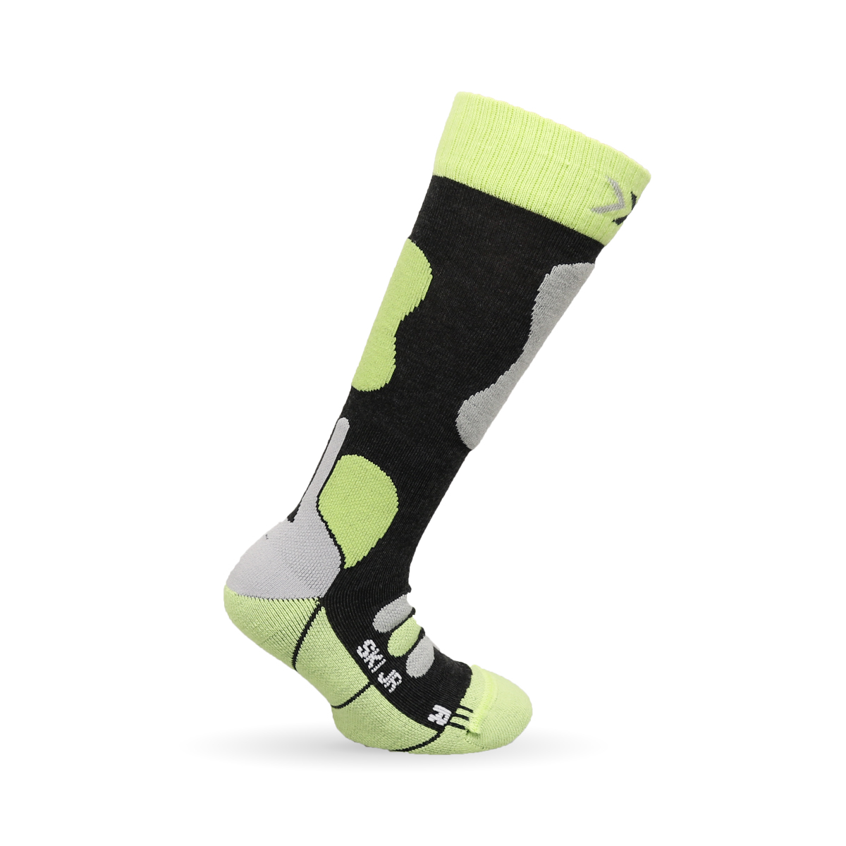 De X-Socks Ski Junior 4.0 Groen is de perfecte combinatie van een kindvriendelijk design en uitstekende X-Socks technologieën. De sokken beschermen de voeten en de kuit, waardoor er minder kans op verwondingen is. Daarnaast zorgen de Ski Junior 4.0 Groen sokken voor het perfecte voetklimaat. Het Traverse AirFlow Channel systeem en het AirConditioning Channel voeren vocht effectief af, waardoor de voeten droog en op de ideale temperatuur blijven. Beschermers bij de tenen, het scheenbeen en de kuit en het schokabsorberende Robur garen bieden het best mogelijke comfort en de best mogelijke bescherming.